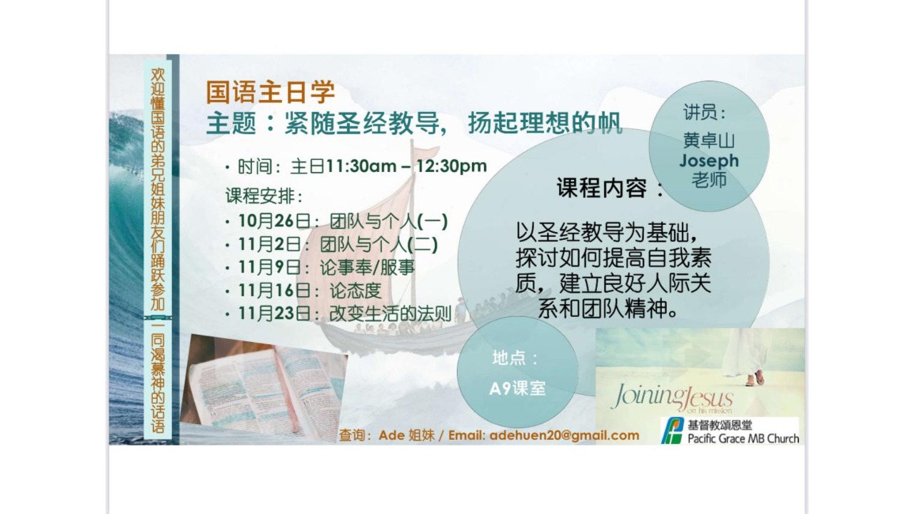 感谢加拿大华人神学院(温哥华)特约教授姜平牧师/博士莅临证道,愿主赐恩福!